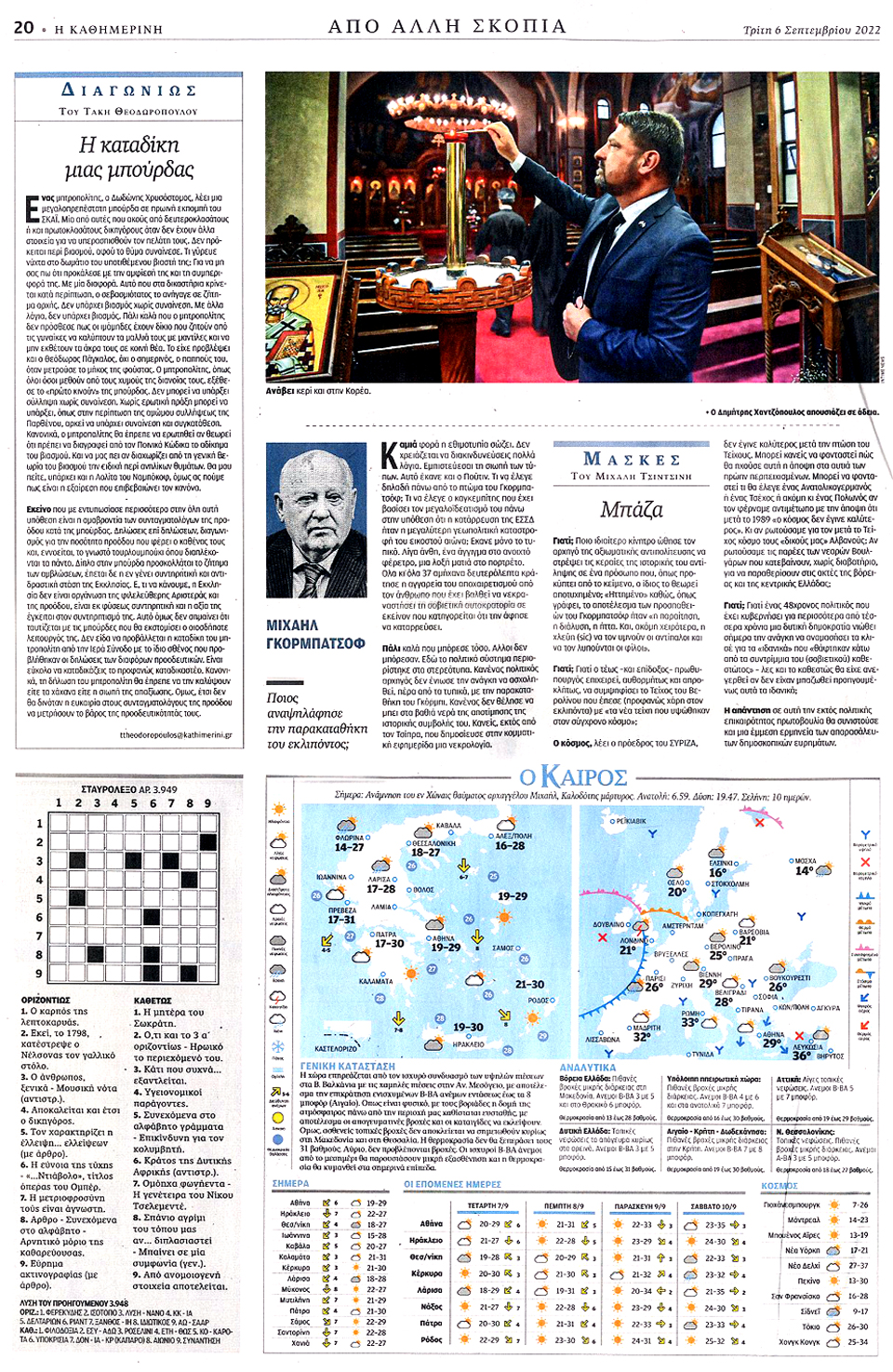 ΚΑΘΗΜΕΡΙΝΗ - 6 Σεπτεμβρίου 2022