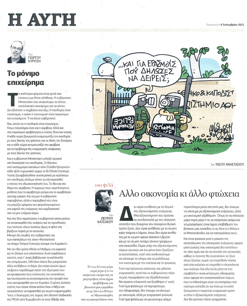 Η ΑΥΓΗ - 9 Σεπτεμβρίου 2022