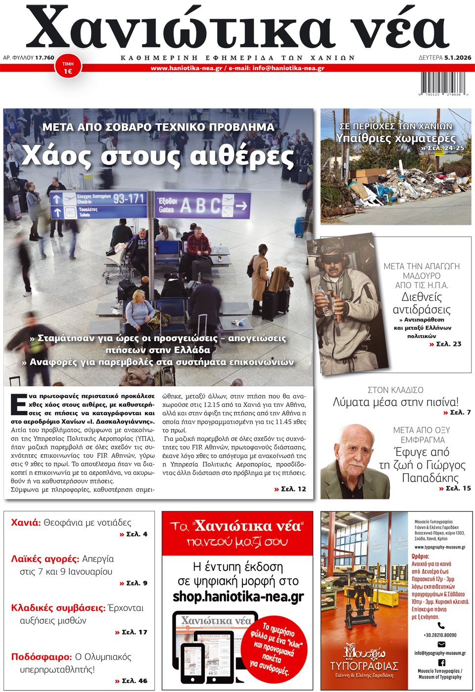 ΧΑΝΙΩΤΙΚΑ ΝΕΑ - 05 Ιανουαρίου 2026