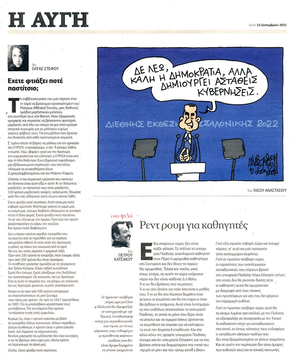Η ΑΥΓΗ - 13 Σεπτεμβρίου 2022