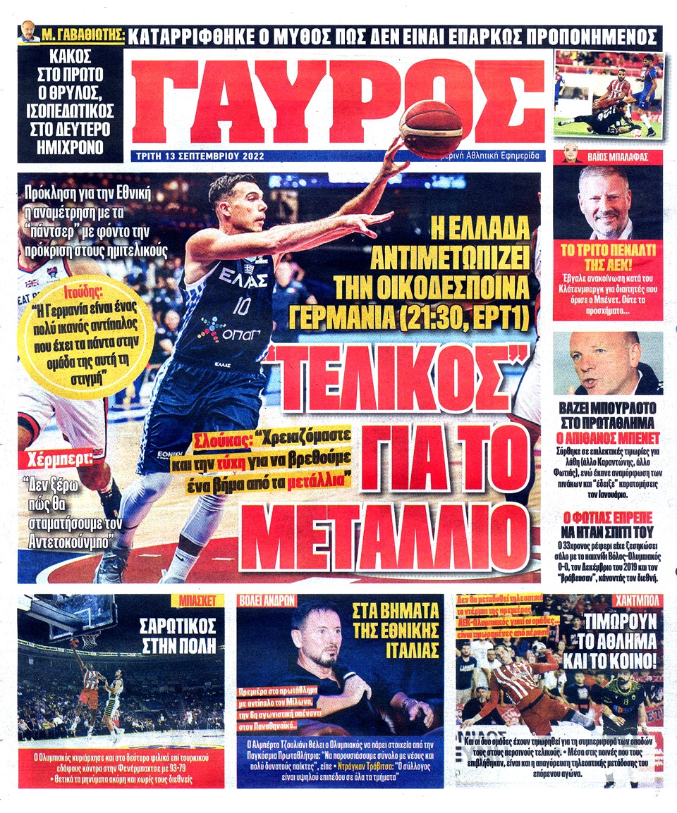 ΠΡΩΤΑΘΛΗΤΗΣ - 13 Σεπτεμβρίου 2022