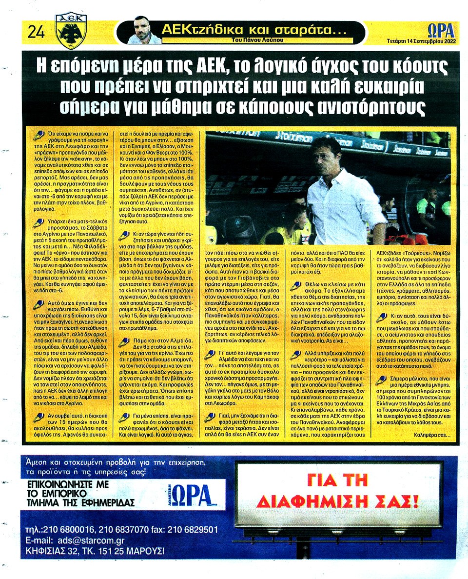 ΑΘΛΗΤΙΚΗ ΩΡΑ ΤΩΝ ΣΠΟΡ - 14 Σεπτεμβρίου 2022