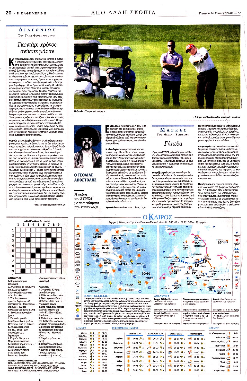 ΚΑΘΗΜΕΡΙΝΗ - 14 Σεπτεμβρίου 2022