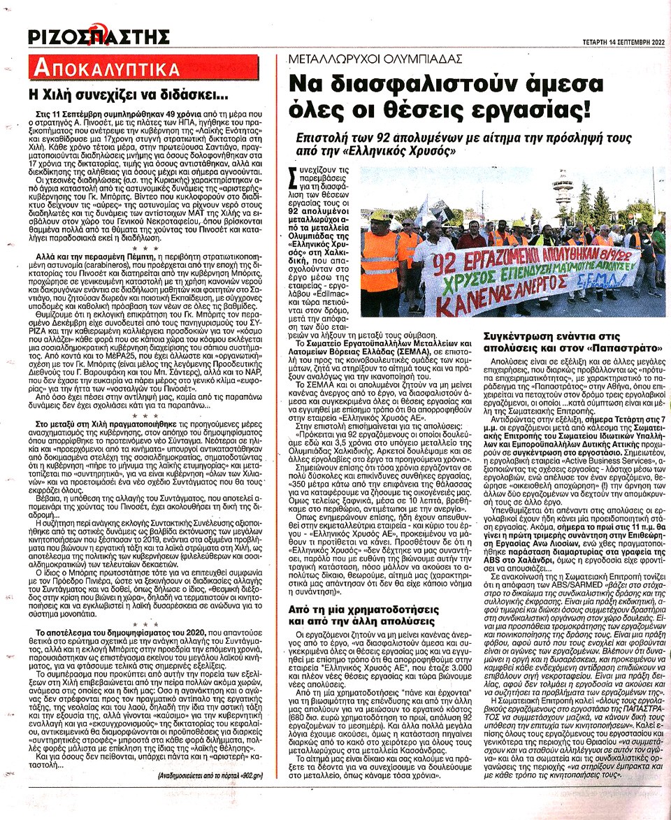ΡΙΖΟΣΠΑΣΤΗΣ - 14 Σεπτεμβρίου 2022