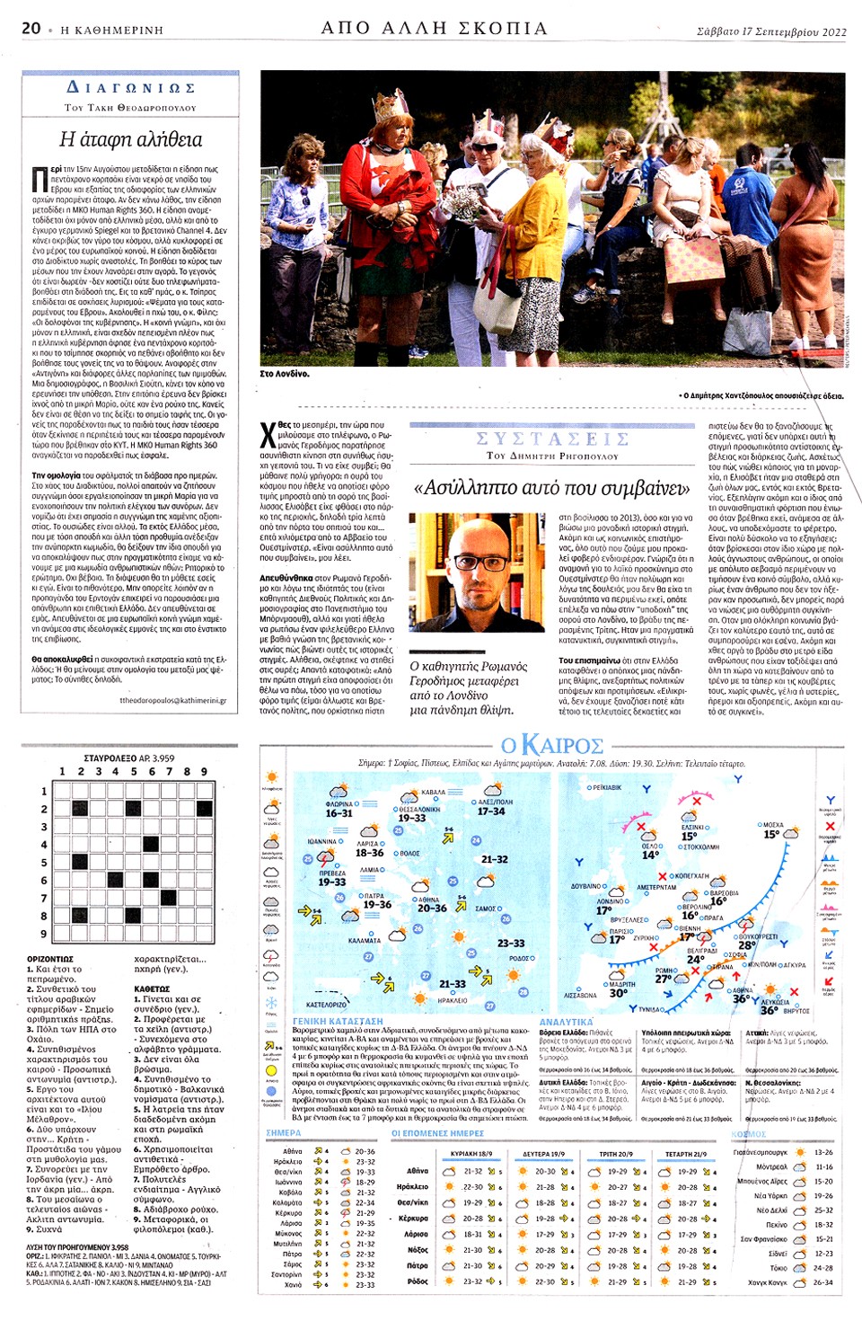 ΚΑΘΗΜΕΡΙΝΗ - 17 Σεπτεμβρίου 2022