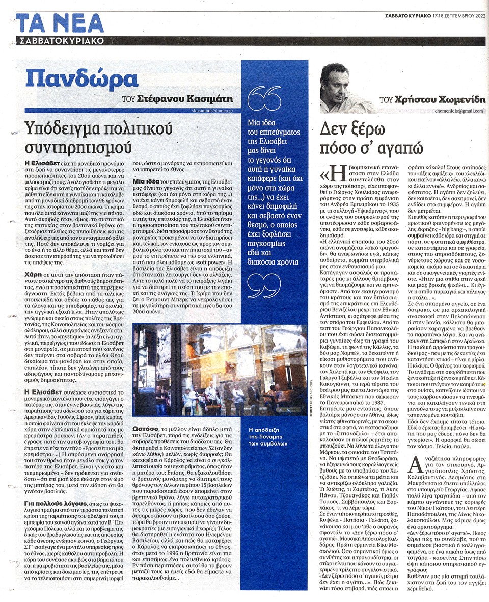 ΤΑ ΝΕΑ - 17 Σεπτεμβρίου 2022