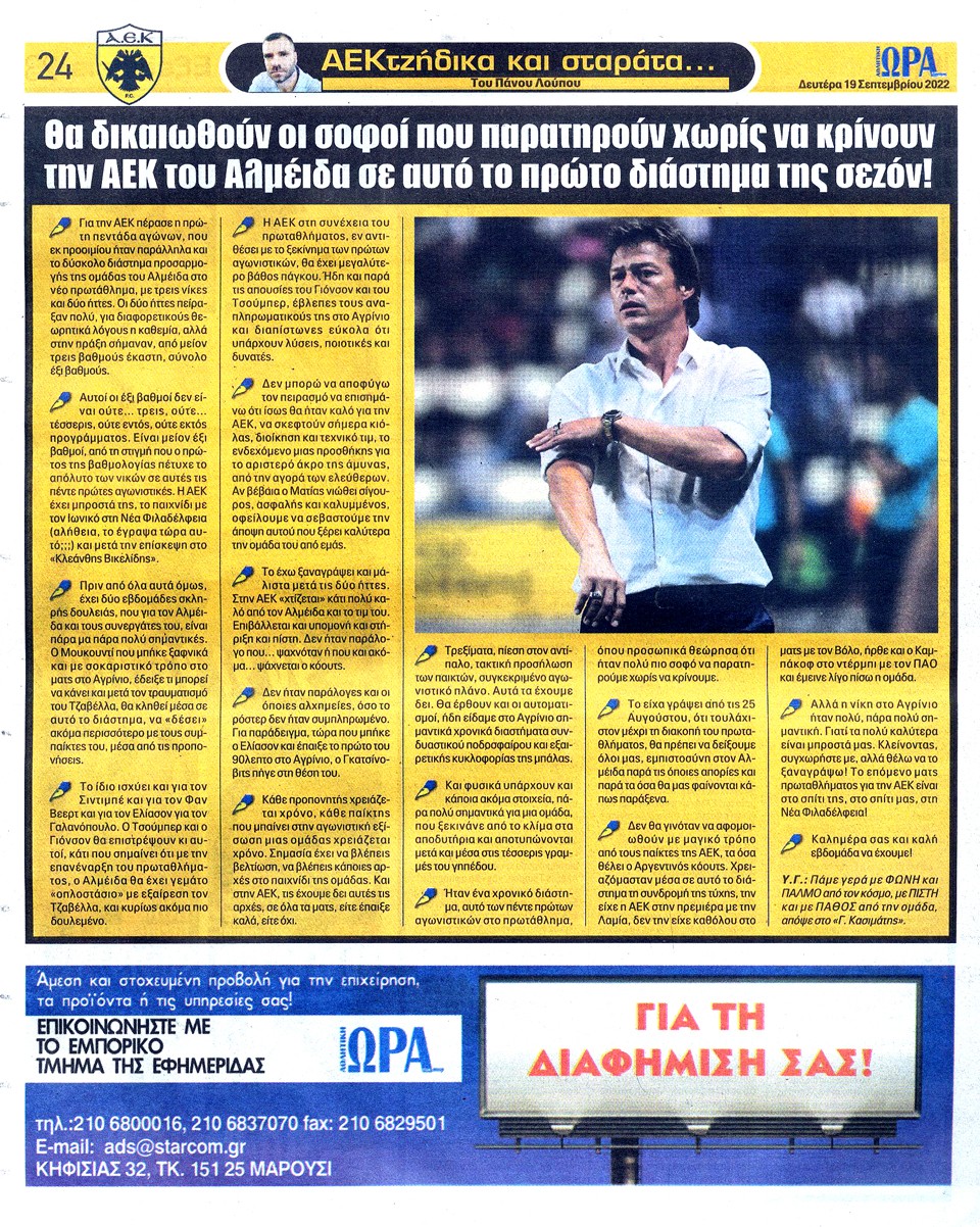 ΑΘΛΗΤΙΚΗ ΩΡΑ ΤΩΝ ΣΠΟΡ - 19 Σεπτεμβρίου 2022