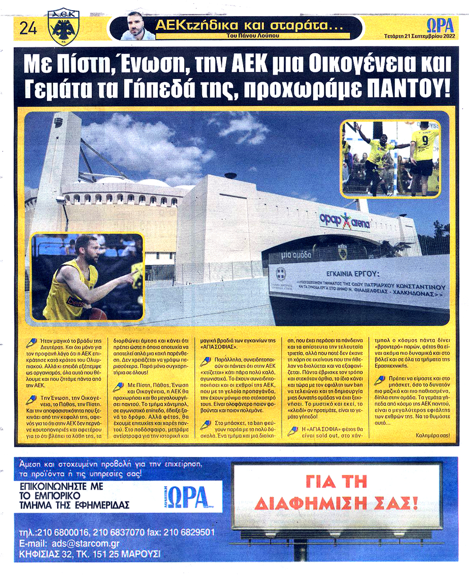 ΑΘΛΗΤΙΚΗ ΩΡΑ ΤΩΝ ΣΠΟΡ - 21 Σεπτεμβρίου 2022