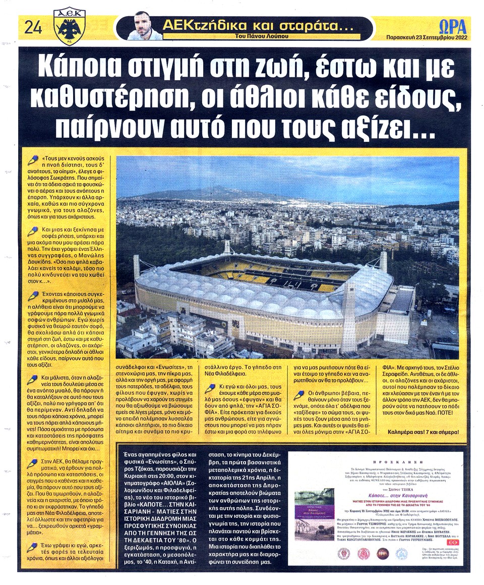 ΑΘΛΗΤΙΚΗ ΩΡΑ ΤΩΝ ΣΠΟΡ - 23 Σεπτεμβρίου 2022