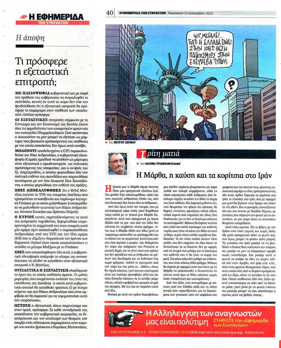 Η ΕΦΗΜΕΡΙΔΑ ΤΩΝ ΣΥΝΤΑΚΤΩΝ - 23 Σεπτεμβρίου 2022