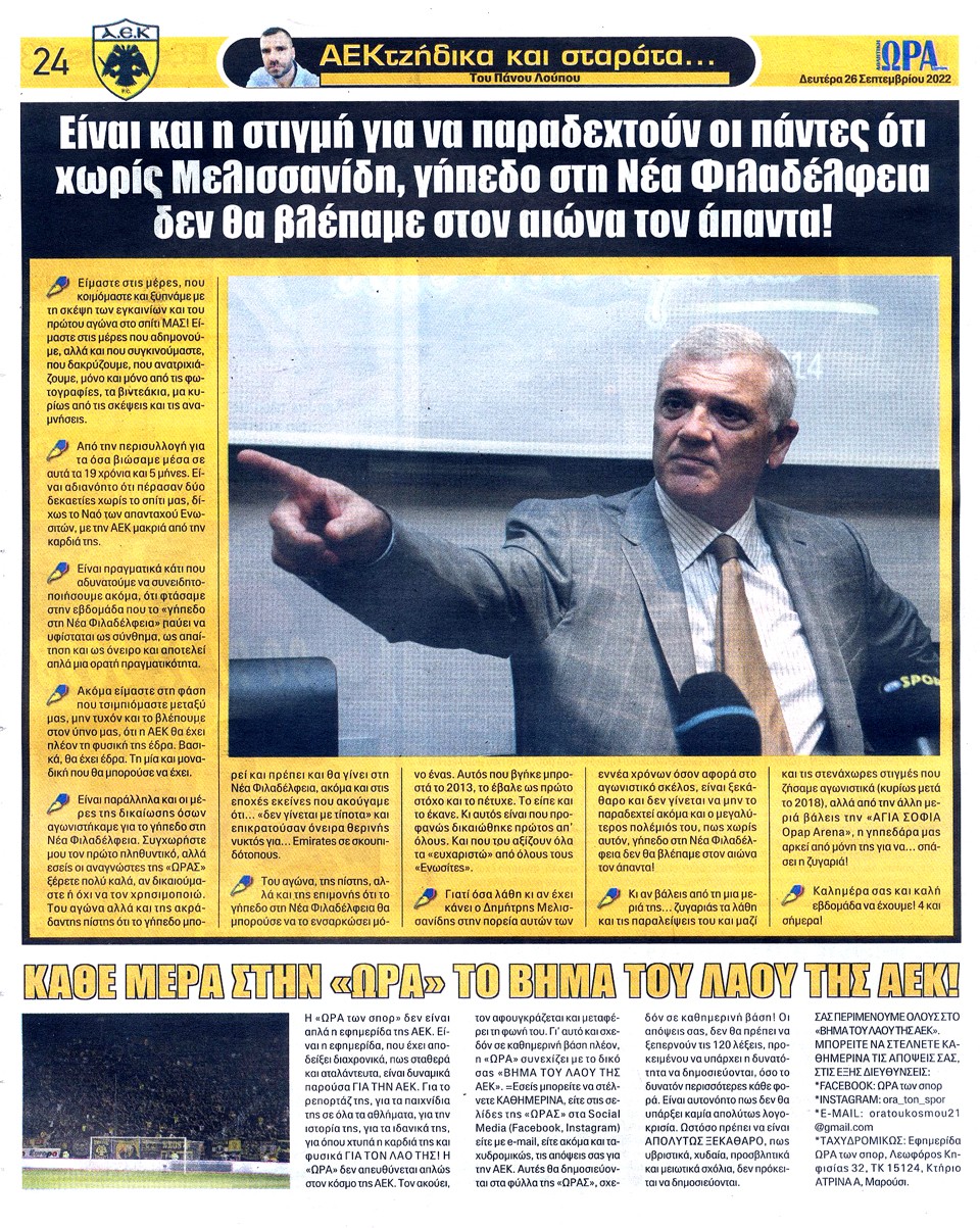 ΑΘΛΗΤΙΚΗ ΩΡΑ ΤΩΝ ΣΠΟΡ - 26 Σεπτεμβρίου 2022