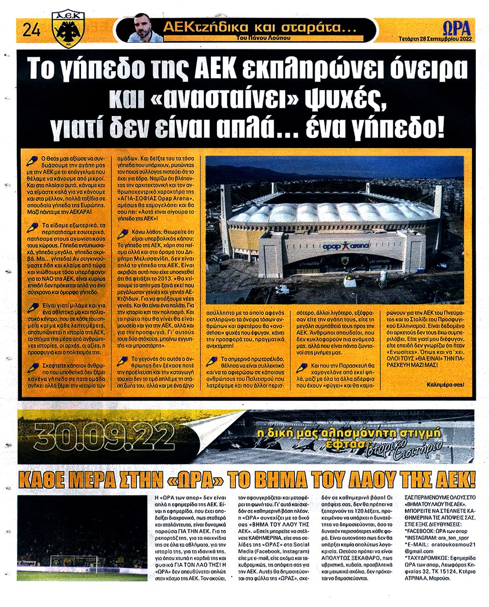 ΑΘΛΗΤΙΚΗ ΩΡΑ ΤΩΝ ΣΠΟΡ - 28 Σεπτεμβρίου 2022