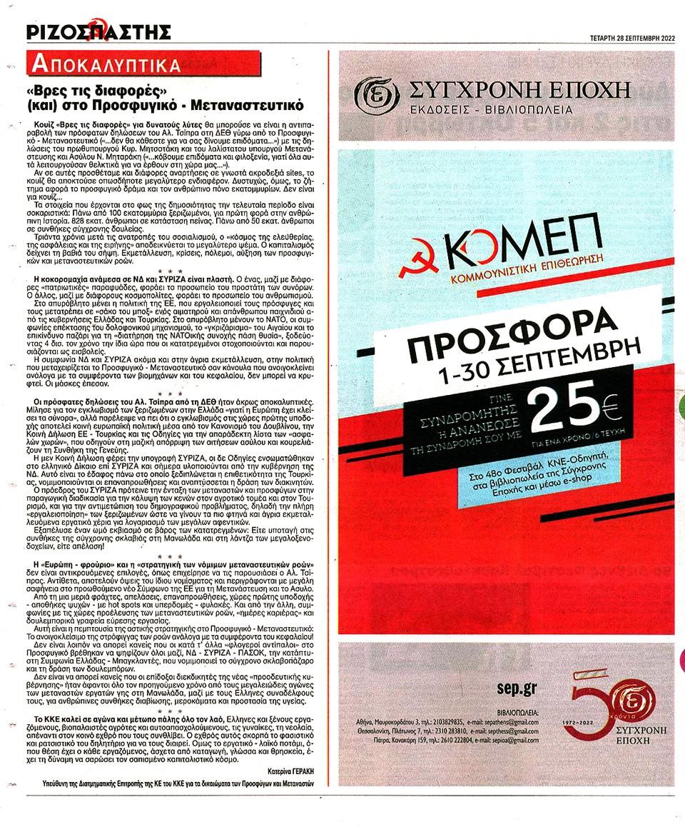 ΡΙΖΟΣΠΑΣΤΗΣ - 28 Σεπτεμβρίου 2022