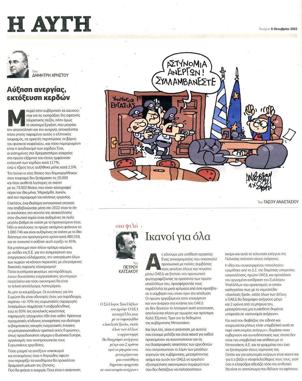 Η ΑΥΓΗ - 5 Οκτωβρίου 2022