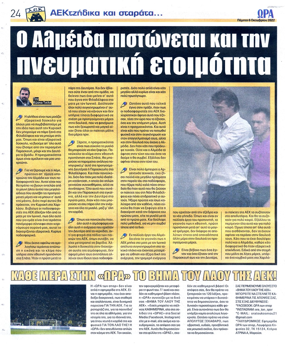 ΑΘΛΗΤΙΚΗ ΩΡΑ ΤΩΝ ΣΠΟΡ - 6 Οκτωβρίου 2022