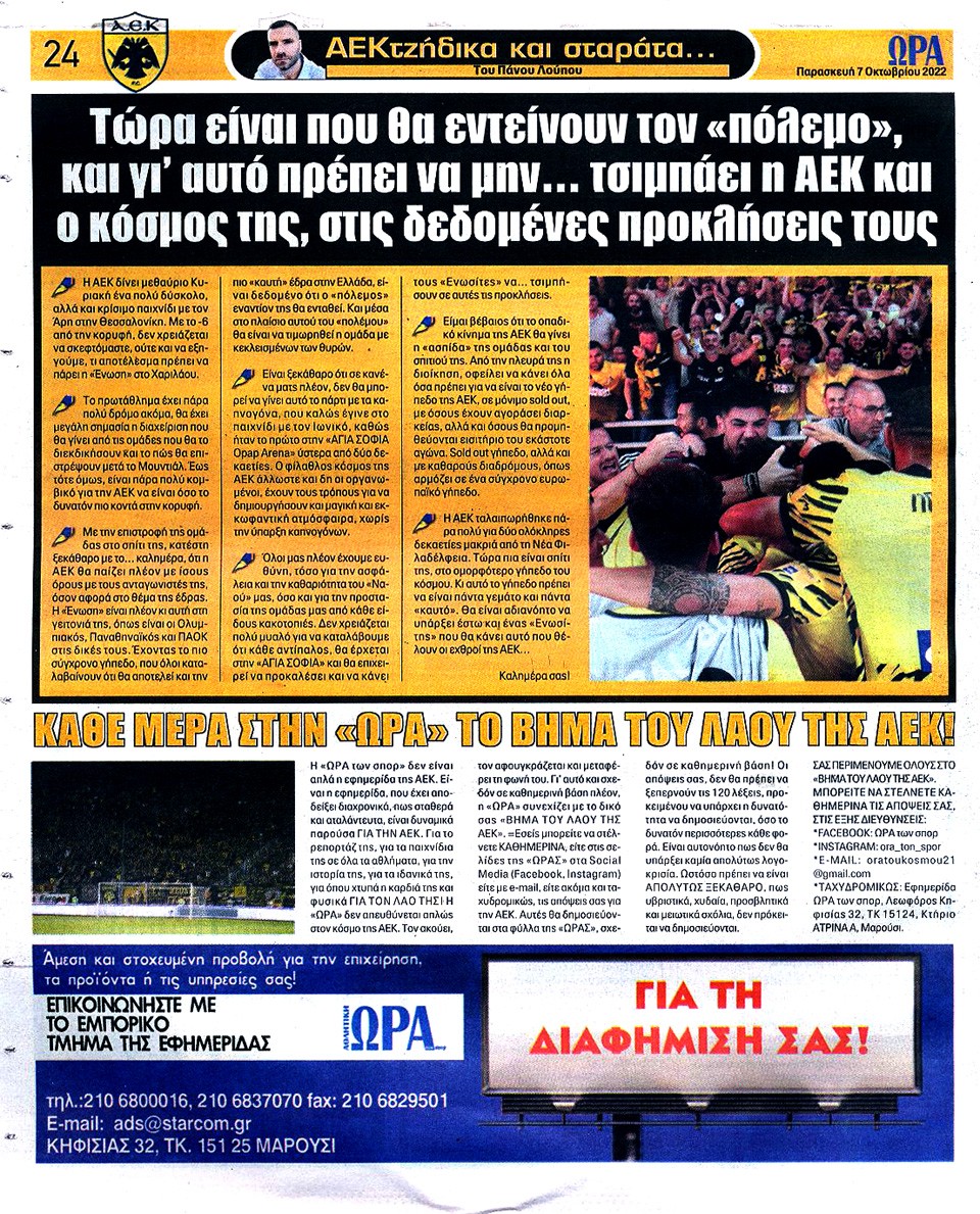 ΑΘΛΗΤΙΚΗ ΩΡΑ ΤΩΝ ΣΠΟΡ - 7 Οκτωβρίου 2022