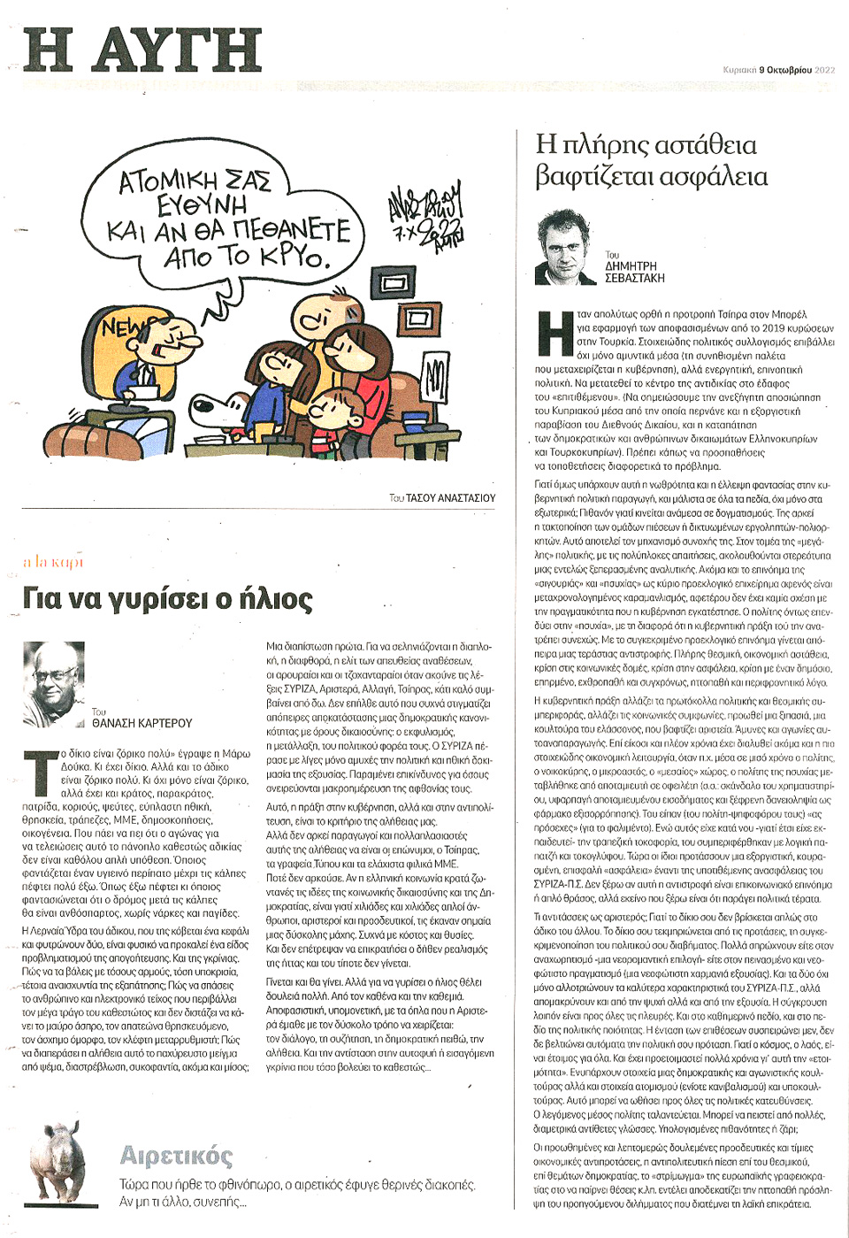 Η ΑΥΓΗ ΤΗΣ ΚΥΡΙΑΚΗΣ - 9 Οκτωβρίου 2022