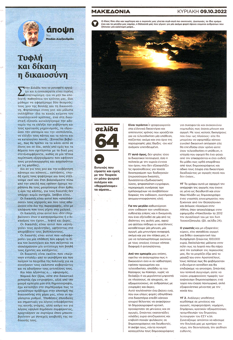 ΜΑΚΕΔΟΝΙΑ ΤΗΣ ΚΥΡΙΑΚΗΣ - 9 Οκτωβρίου 2022
