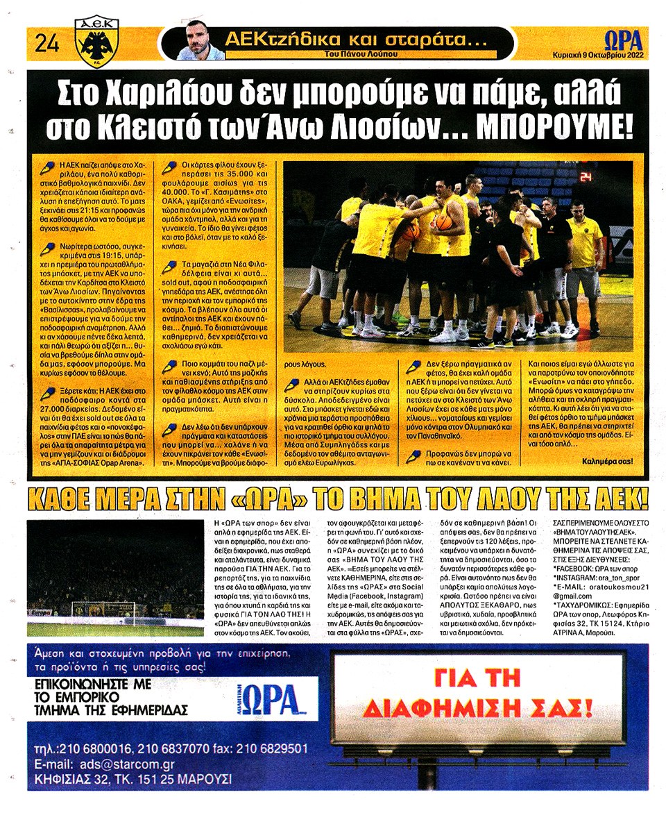 ΑΘΛΗΤΙΚΗ ΩΡΑ ΤΩΝ ΣΠΟΡ - 9 Οκτωβρίου 2022