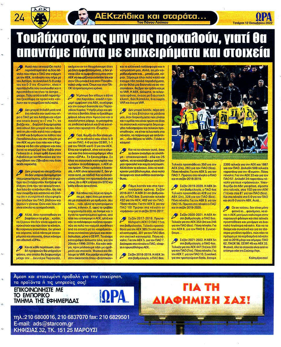 ΑΘΛΗΤΙΚΗ ΩΡΑ ΤΩΝ ΣΠΟΡ - 12 Οκτωβρίου 2022