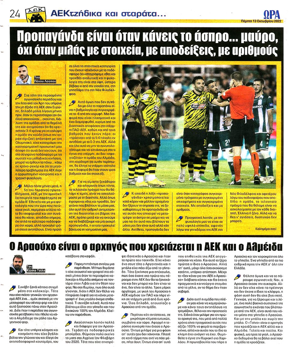 ΑΘΛΗΤΙΚΗ ΩΡΑ ΤΩΝ ΣΠΟΡ - 13 Οκτωβρίου 2022