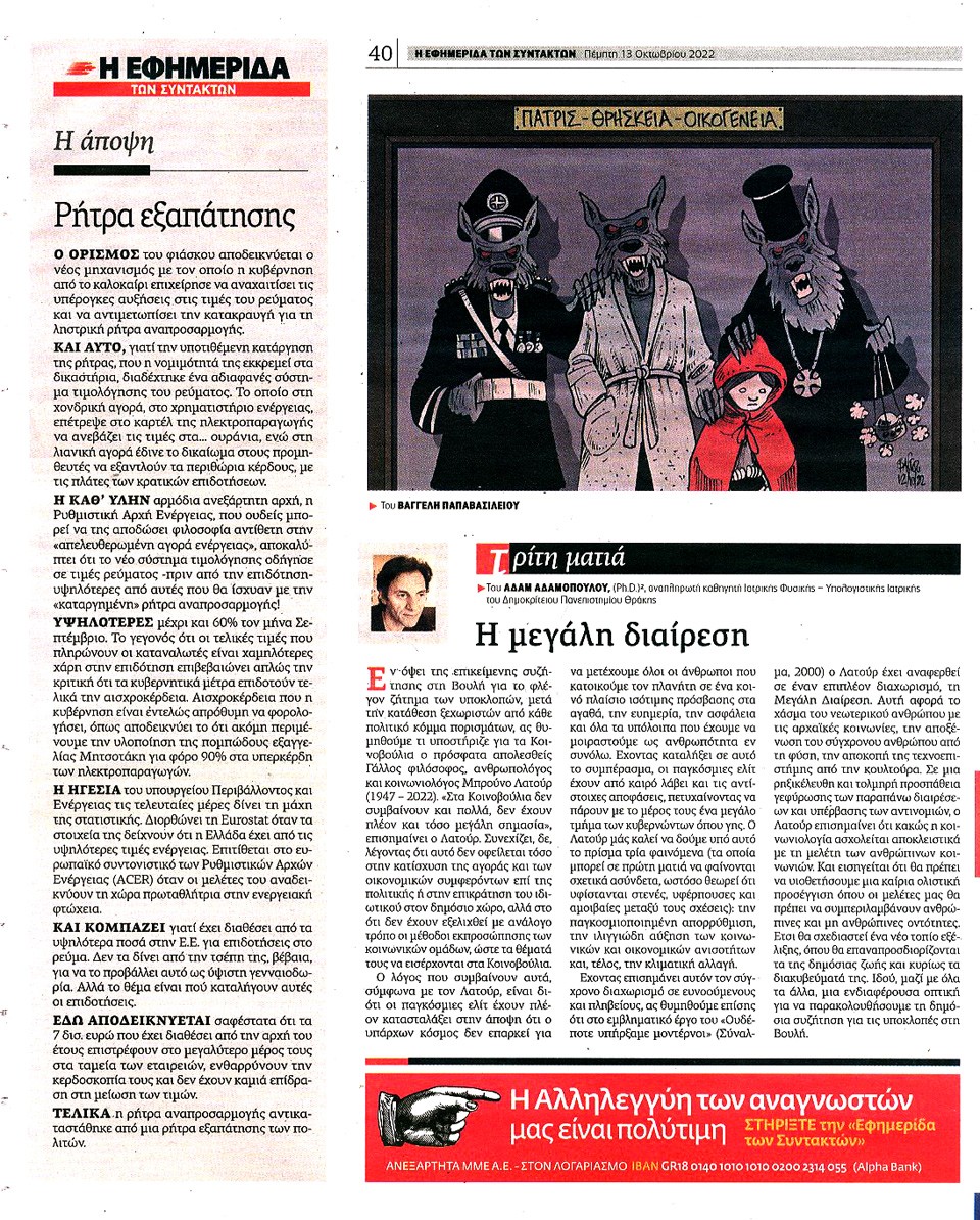 Η ΕΦΗΜΕΡΙΔΑ ΤΩΝ ΣΥΝΤΑΚΤΩΝ - 13 Οκτωβρίου 2022