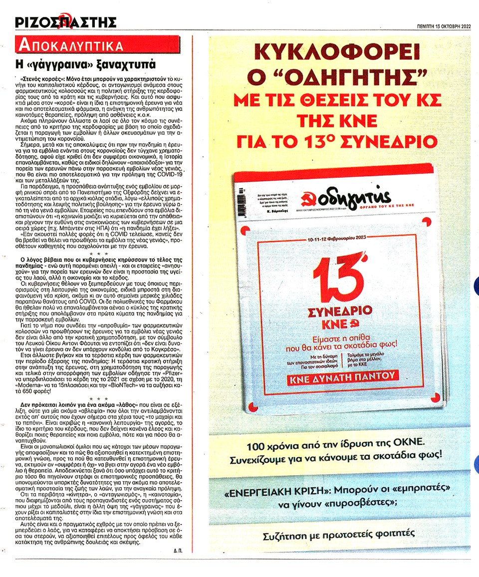 ΡΙΖΟΣΠΑΣΤΗΣ - 13 Οκτωβρίου 2022