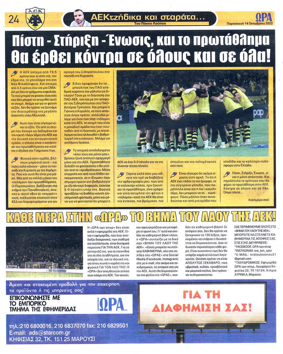 ΑΘΛΗΤΙΚΗ ΩΡΑ ΤΩΝ ΣΠΟΡ - 14 Οκτωβρίου 2022