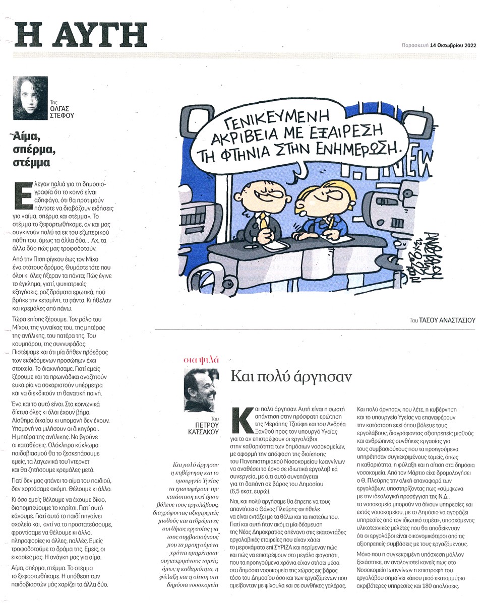 Η ΑΥΓΗ - 14 Οκτωβρίου 2022