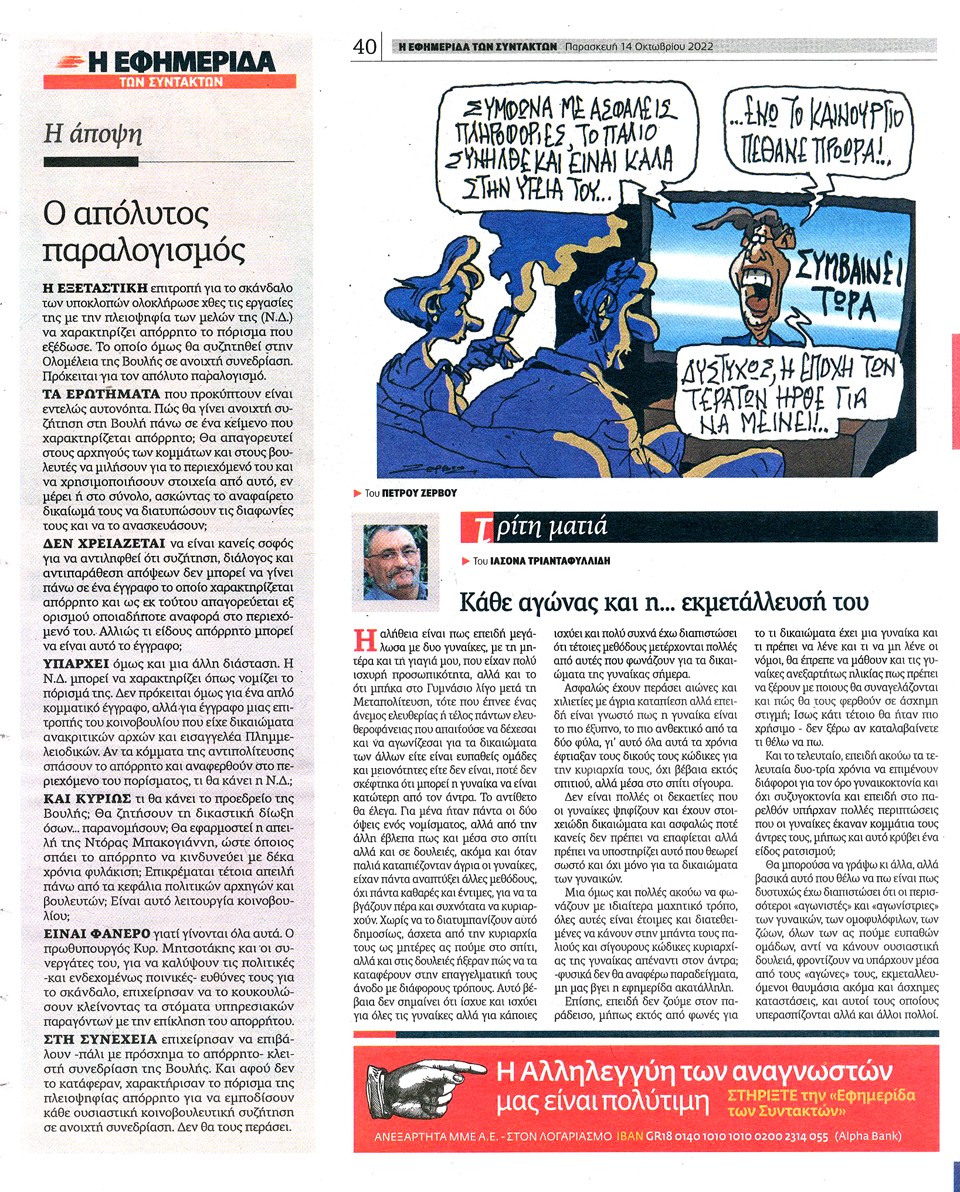 Η ΕΦΗΜΕΡΙΔΑ ΤΩΝ ΣΥΝΤΑΚΤΩΝ - 14 Οκτωβρίου 2022