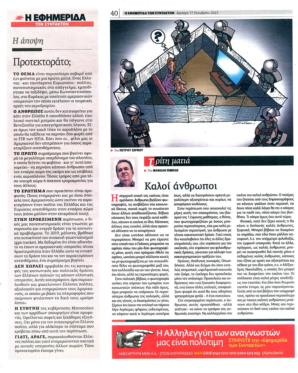 Η ΕΦΗΜΕΡΙΔΑ ΤΩΝ ΣΥΝΤΑΚΤΩΝ - 17 Οκτωβρίου 2022