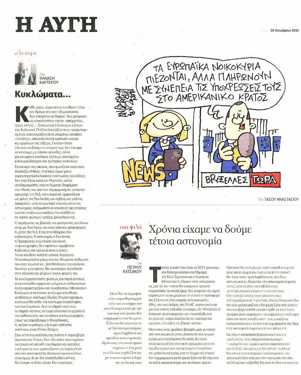 Η ΑΥΓΗ - 20 Οκτωβρίου 2022