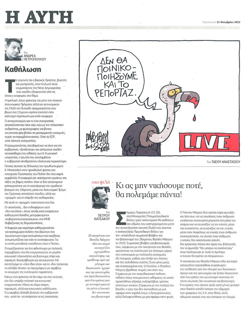 Η ΑΥΓΗ - 21 Οκτωβρίου 2022