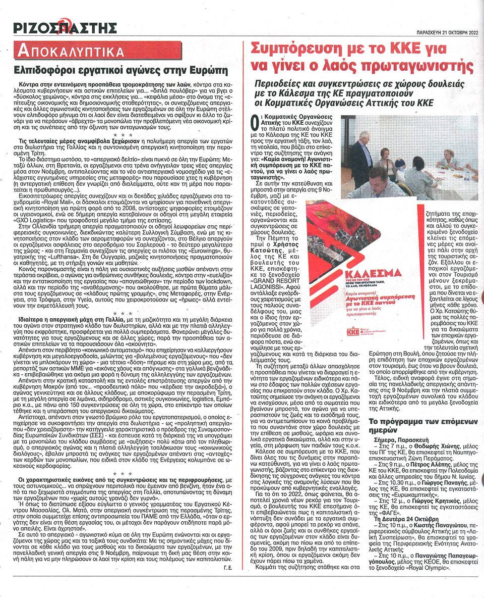 ΡΙΖΟΣΠΑΣΤΗΣ - 21 Οκτωβρίου 2022