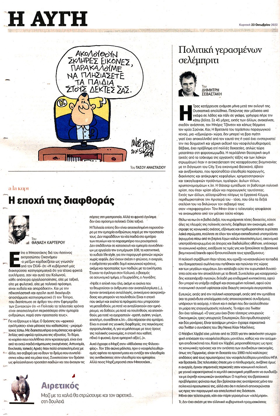 Η ΑΥΓΗ ΤΗΣ ΚΥΡΙΑΚΗΣ - 23 Οκτωβρίου 2022