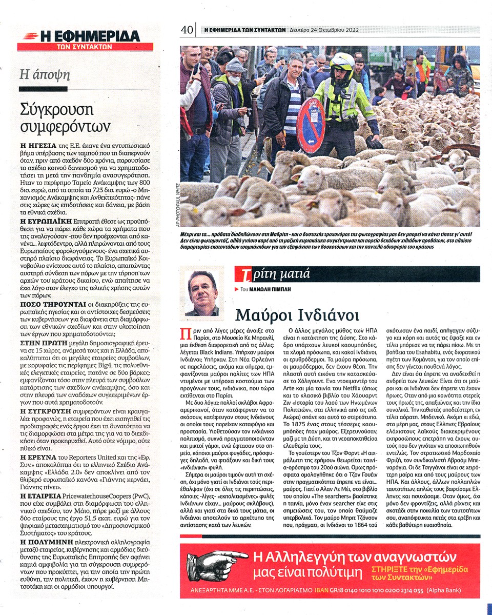Η ΕΦΗΜΕΡΙΔΑ ΤΩΝ ΣΥΝΤΑΚΤΩΝ - 24 Οκτωβρίου 2022