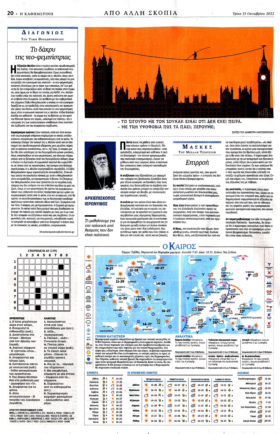 ΚΑΘΗΜΕΡΙΝΗ - 25 Οκτωβρίου 2022