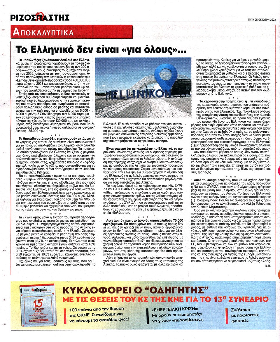 ΡΙΖΟΣΠΑΣΤΗΣ - 25 Οκτωβρίου 2022