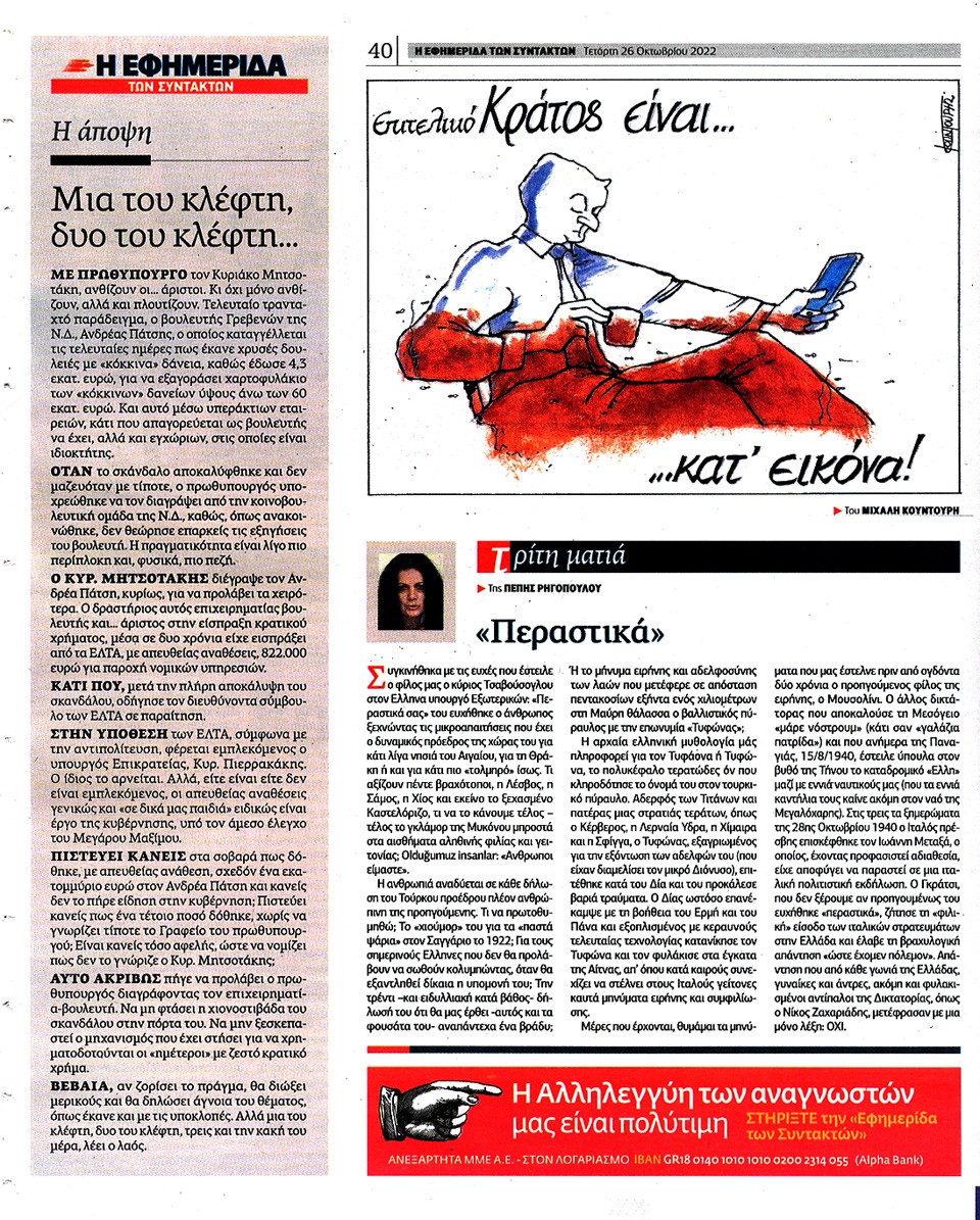 Η ΕΦΗΜΕΡΙΔΑ ΤΩΝ ΣΥΝΤΑΚΤΩΝ - 26 Οκτωβρίου 2022