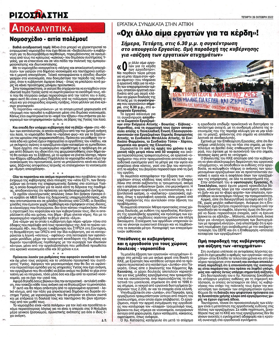 ΡΙΖΟΣΠΑΣΤΗΣ - 26 Οκτωβρίου 2022