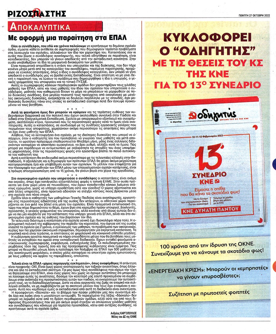 ΡΙΖΟΣΠΑΣΤΗΣ - 27 Οκτωβρίου 2022