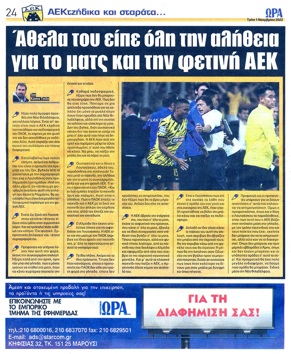 ΑΘΛΗΤΙΚΗ ΩΡΑ ΤΩΝ ΣΠΟΡ - 1 Νοεμβρίου 2022