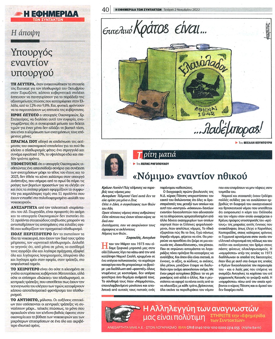Η ΕΦΗΜΕΡΙΔΑ ΤΩΝ ΣΥΝΤΑΚΤΩΝ - 2 Νοεμβρίου 2022