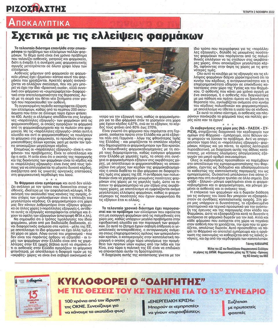 ΡΙΖΟΣΠΑΣΤΗΣ - 2 Νοεμβρίου 2022