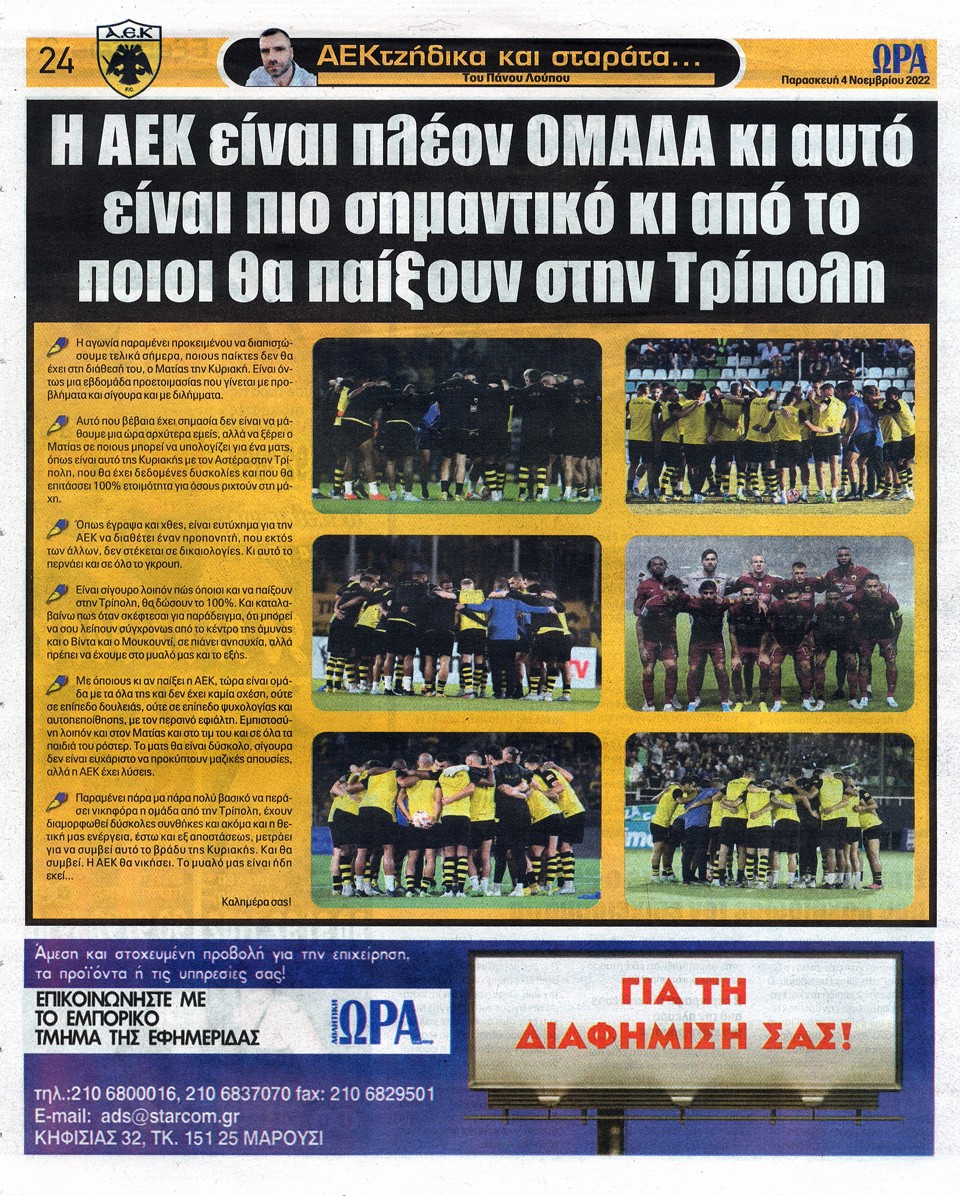 ΑΘΛΗΤΙΚΗ ΩΡΑ ΤΩΝ ΣΠΟΡ - 4 Νοεμβρίου 2022