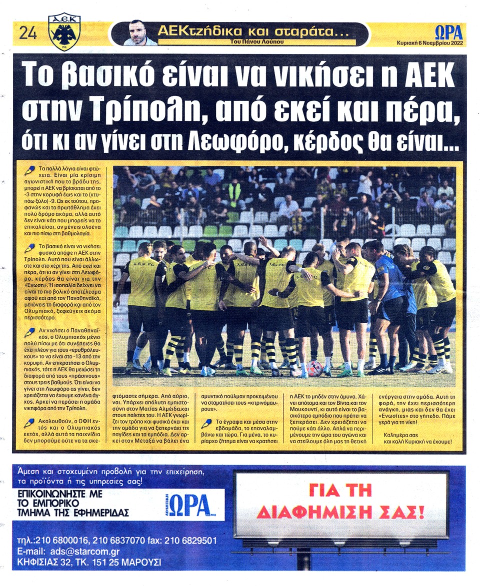ΑΘΛΗΤΙΚΗ ΩΡΑ ΤΩΝ ΣΠΟΡ - 6 Νοεμβρίου 2022