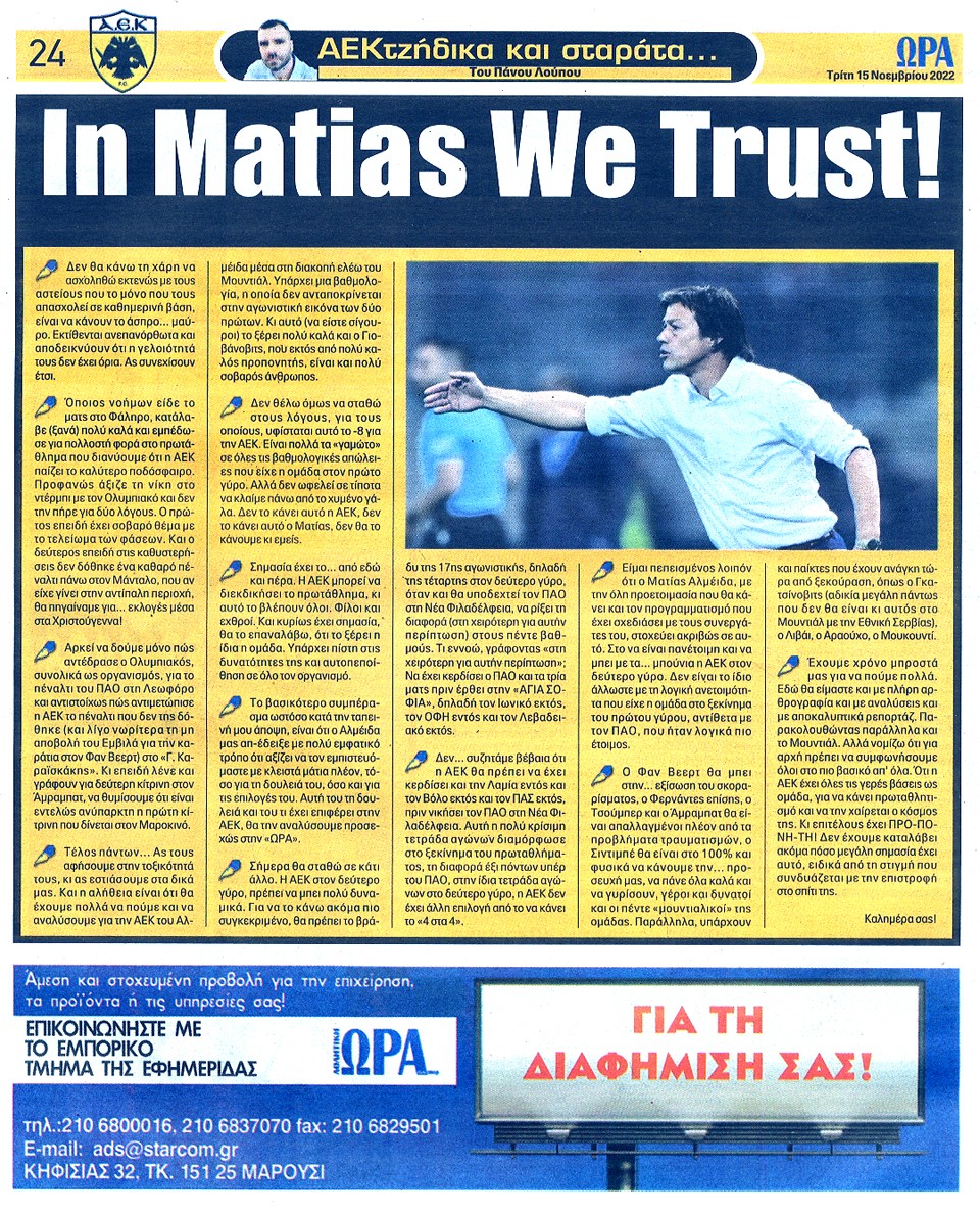 ΑΘΛΗΤΙΚΗ ΩΡΑ ΤΩΝ ΣΠΟΡ - 15 Νοεμβρίου 2022