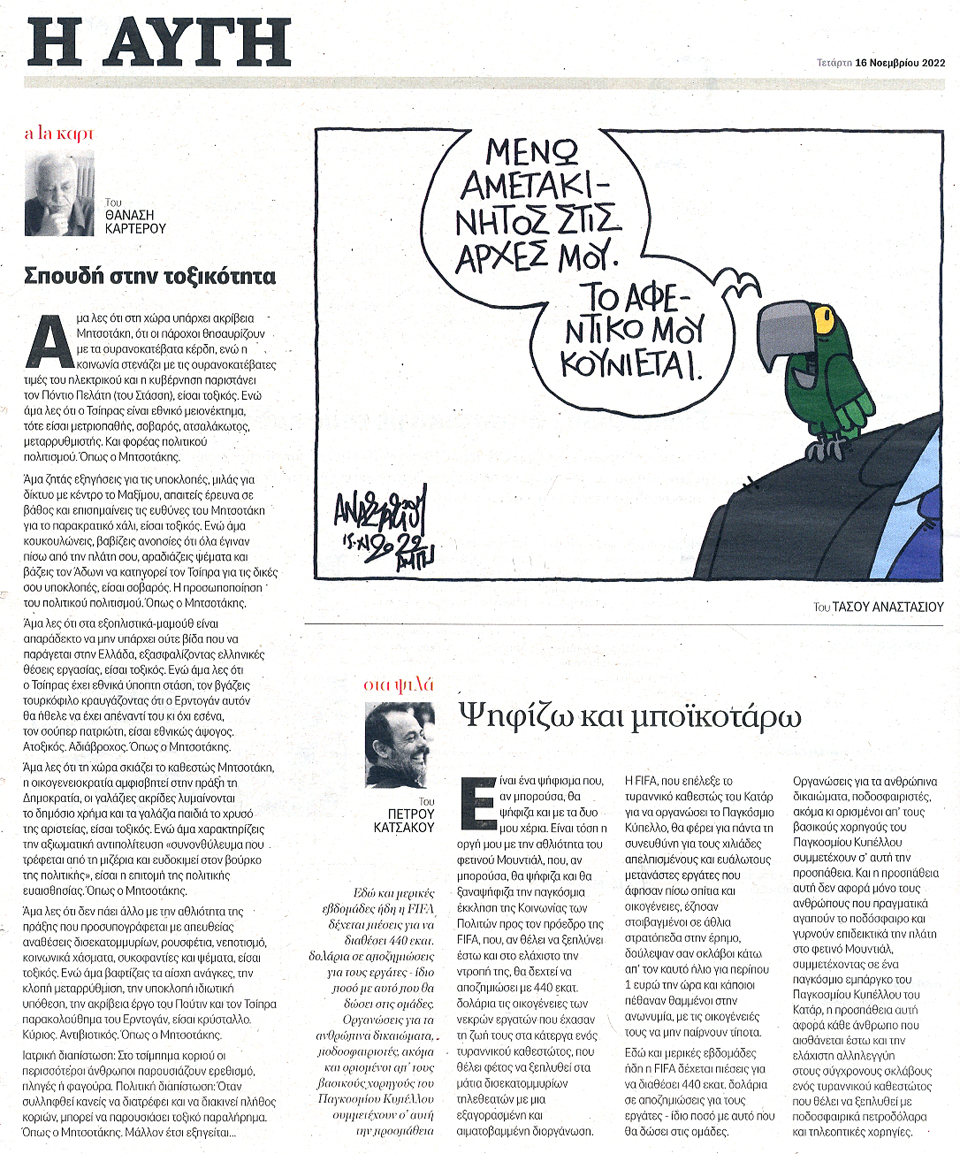 Η ΑΥΓΗ - 16 Νοεμβρίου 2022