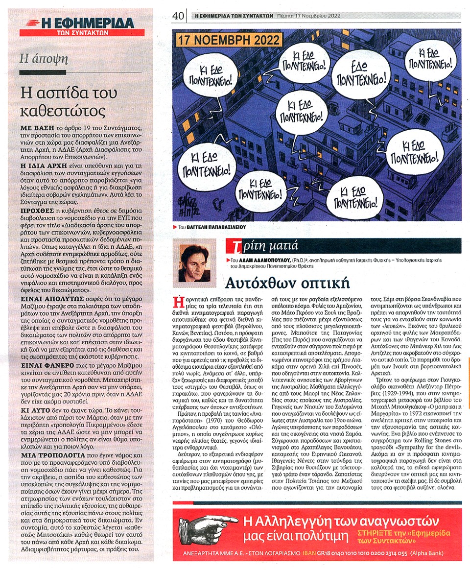 Η ΕΦΗΜΕΡΙΔΑ ΤΩΝ ΣΥΝΤΑΚΤΩΝ - 17 Νοεμβρίου 2022