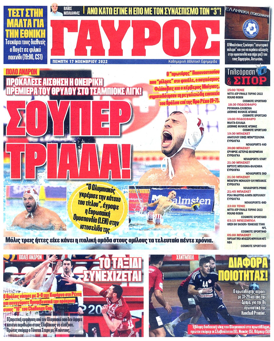 ΠΡΩΤΑΘΛΗΤΗΣ - 17 Νοεμβρίου 2022